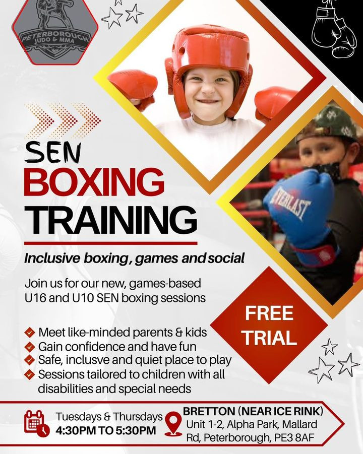 One week today we are launching our SEN boxing and activities class for children aged 5-15. Classes will run from 5:30pm and finish at 6:30pm. Bring your little one to our inclusive class and watch their confidence increase, their energy get put to good use, all whilst they socialise with new friends🥊