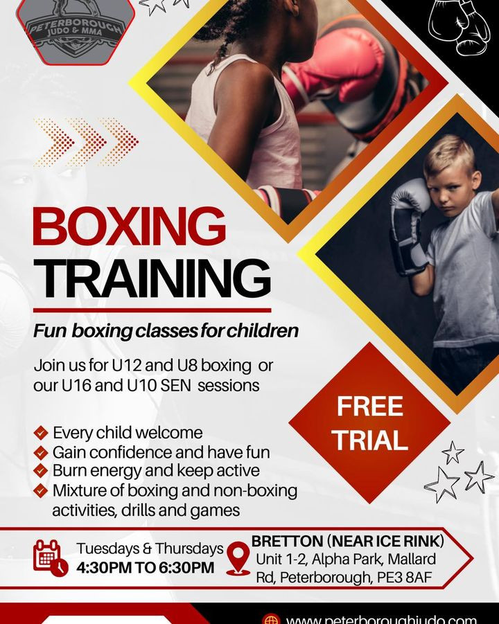 🥊Is your child 5-15 and looking to learn some boxing basics, improve their fitness, build confidence and meet new friends? If so why not come and trial our new class on a Thursday evening🥊 Email us at peterboroughjudogmail.com to find out more📲