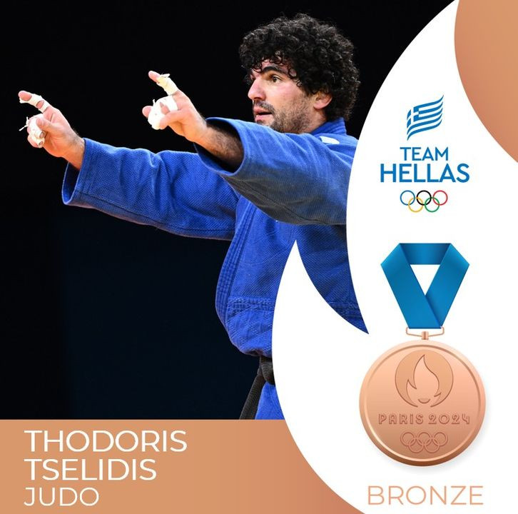 🥉Είναι χάλκινο και το κατέκτησε ο γίγαντας Θοδωρής Τσελίδης στην κατηγορία των -90κ. στο τζούντο, νικώντας στον μικρό τελικό τον Ισπανό Μοσακλισβίλι